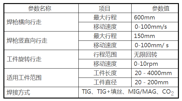 焊接參數(shù)如:焊接速度,焊接角度,焊縫位置,起弧延時(shí),熄弧延時(shí),送絲延時(shí),提前停絲等均可通過(guò)觸摸式人機(jī)界面輸入,并可存儲(chǔ)和調(diào)用,方便使用。