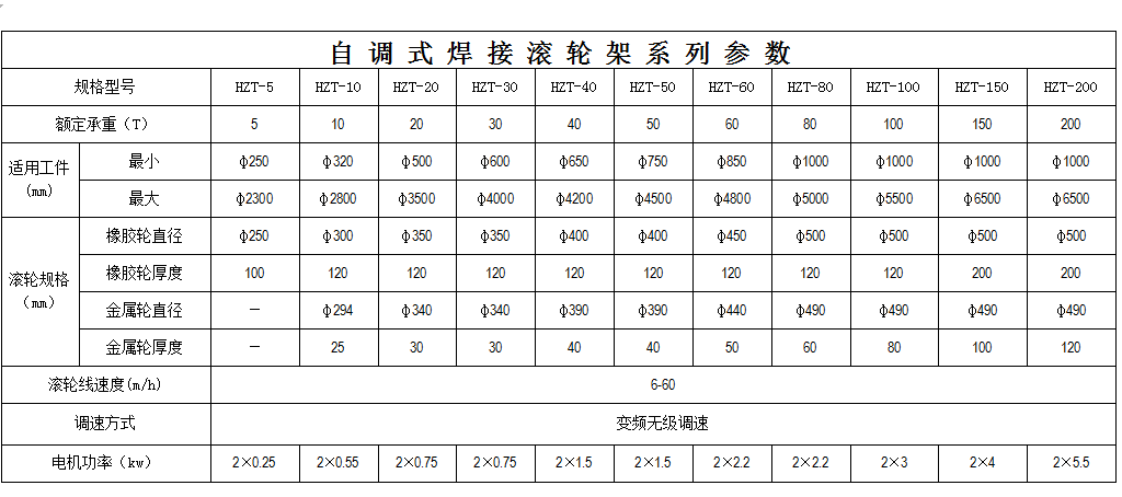 焊接滾輪架,是利用主動(dòng)滾輪與焊件之間的摩擦力帶動(dòng)工件旋轉(zhuǎn)的變位設(shè)備。滾輪架可根據(jù)工件直徑大小自動(dòng)調(diào)節(jié)輪組的擺角,并能自動(dòng)調(diào)心。滾輪架主要用于管道、容器、鍋爐、油罐等圓筒形工件的裝配或焊接,滾輪架當(dāng)與焊接山東操作機(jī)、焊接電源配套時(shí),可以實(shí)現(xiàn)工件的內(nèi)外縱縫和內(nèi)外環(huán)縫焊接。滾輪架充分吸取了國(guó)內(nèi)外同類產(chǎn)品的優(yōu)點(diǎn),具有工藝、質(zhì)量可靠、操作簡(jiǎn)單、傳動(dòng)噪聲低、工件回轉(zhuǎn)平穩(wěn)等優(yōu)點(diǎn)。滾輪架是實(shí)現(xiàn)壓力容器及筒狀工件焊接自動(dòng)化、半自動(dòng)化的必備設(shè)備。自調(diào)式滾輪架滾輪驅(qū)動(dòng)采用變頻調(diào)速電動(dòng)機(jī),可按焊接規(guī)范進(jìn)行無(wú)極調(diào)速,具有焊接速度調(diào)速范圍寬、轉(zhuǎn)動(dòng)平滑性好、低速特性硬等特點(diǎn)。當(dāng)對(duì)主、從滾輪架的高度作適當(dāng)?shù)恼{(diào)整后,也可進(jìn)行錐體、分段不等徑回轉(zhuǎn)體的裝配與焊接。對(duì)于一些非圓長(zhǎng)形焊件,若將其卡在特制的環(huán)形卡箍?jī)?nèi),也可在焊接滾輪架上進(jìn)行裝焊作業(yè)。特別是自調(diào)式、可調(diào)式焊接滾輪架系列